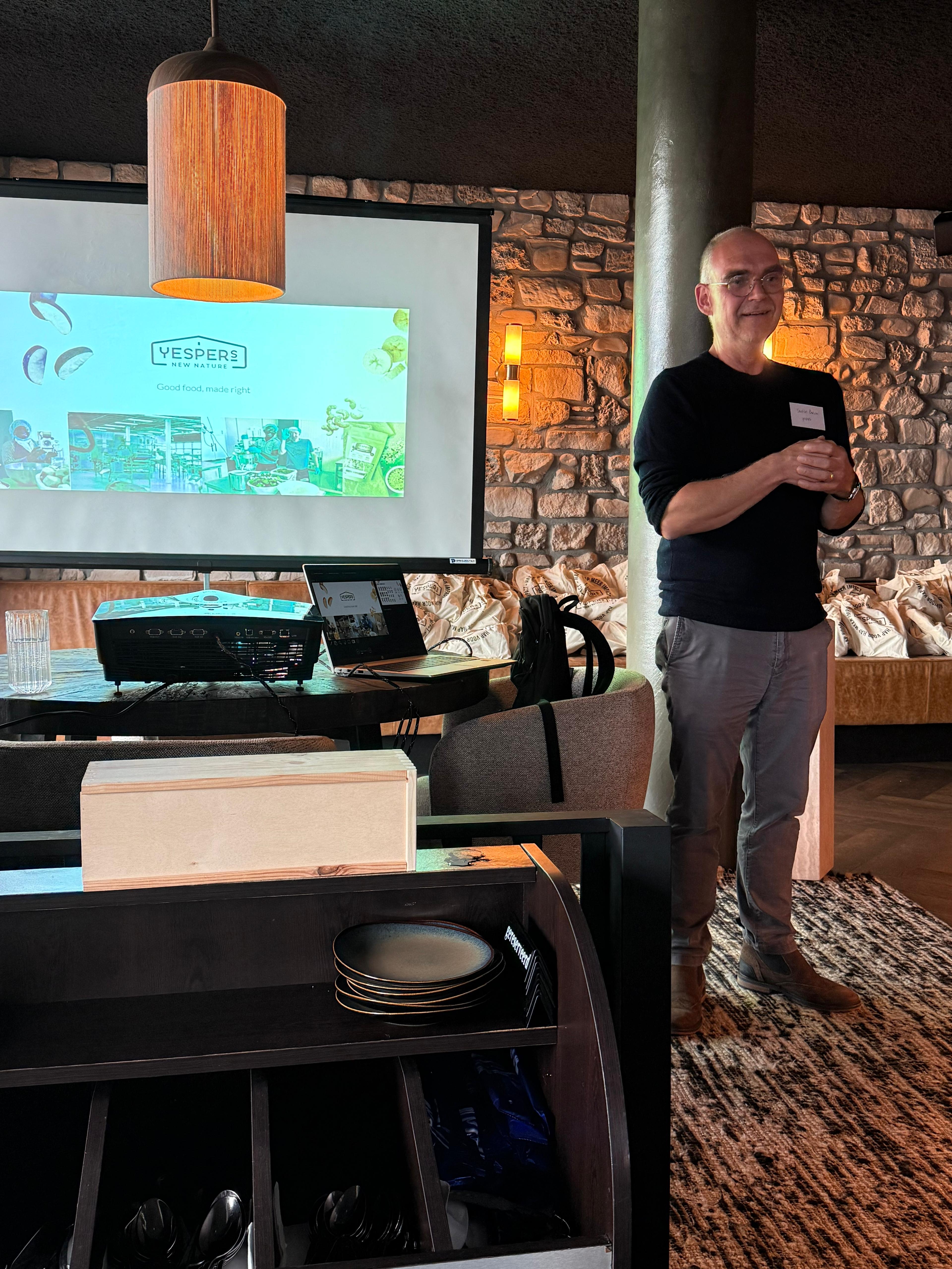 Na een korte introductie door Michiel Martin, voorzitter van de Haagse M&A Professionals, was het woord aan Stefan Baecke, founder van Yespers. Hij nam de leden mee in zijn persoonlijke en zakelijke reis: van de financiële wereld naar het oprichten van een bedrijf dat voedselproducten ontwikkelt met oog voor mens, milieu en maatschappij.