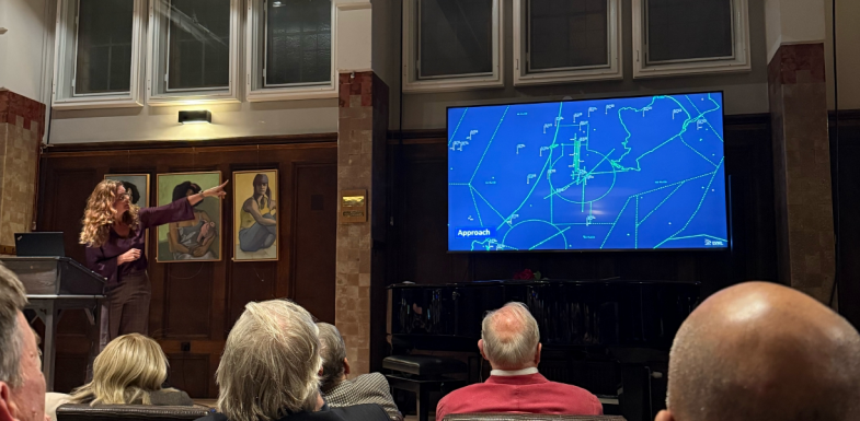 Woensdagavond 8 oktober gaf luchtverkeersleider Pascale Schaap een enerverende lezing over haar werk op de een van de bijzonderste werkvloeren van Nederland: de luchtverkeerstoren te Schiphol. De selectieprocedure voor de opleiding, het speciale Engels van luchtverkeerleiders, de verschillende taken in de toren zelf: alles passeerde de revue. Het was bijzonder een inkijkje te krijgen in wat er allemaal komt kijken bij de vluchten die wij voor vakantie of werk voor lief nemen. De interesse van het publiek bleek uit de vele vragen, variërend van aanvliegroutes boven het eigen huis tot de technische classificaties van vliegtuigen. Oud-luchtmacht, studenten vliegtuigbouwkunde en onze leden zorgden voor een gemêleerd gezelschap. Na een boeiend anderhalf uur en het hartelijk bedanken van de spreker voor haar geweldige verhaal, werd de gezelligheid bij de bar voortgezet onder het genot van een drankje. Het was weer een geslaagde avond van De Maatschappij op Sociëteit Vereeniging te Haarlem.